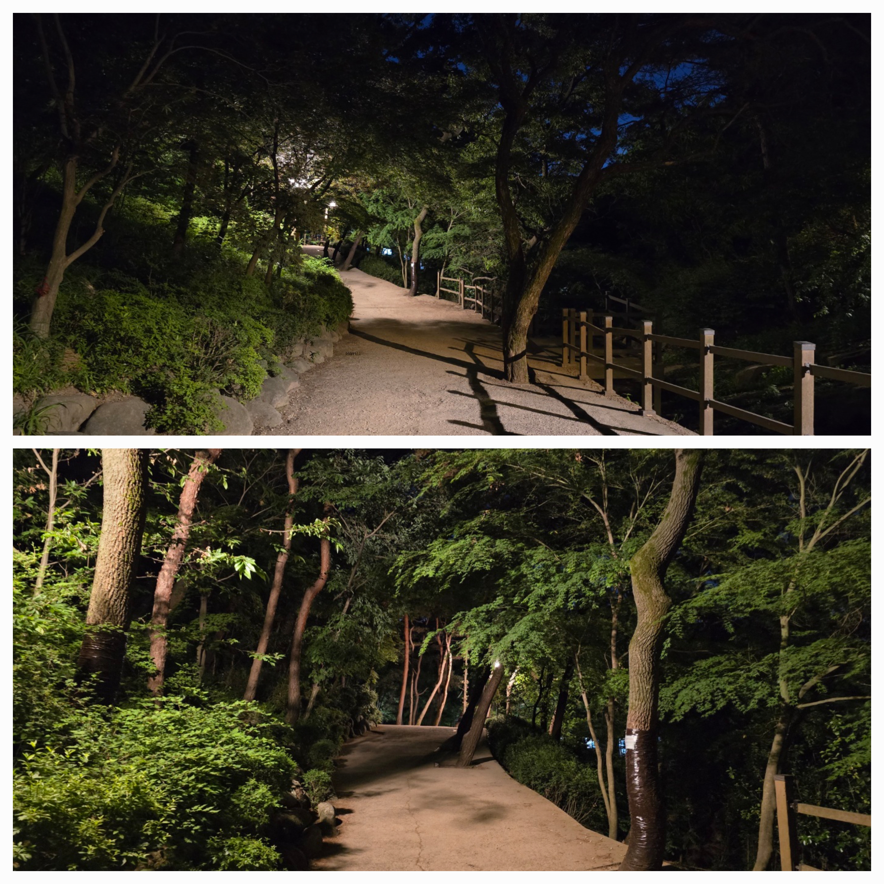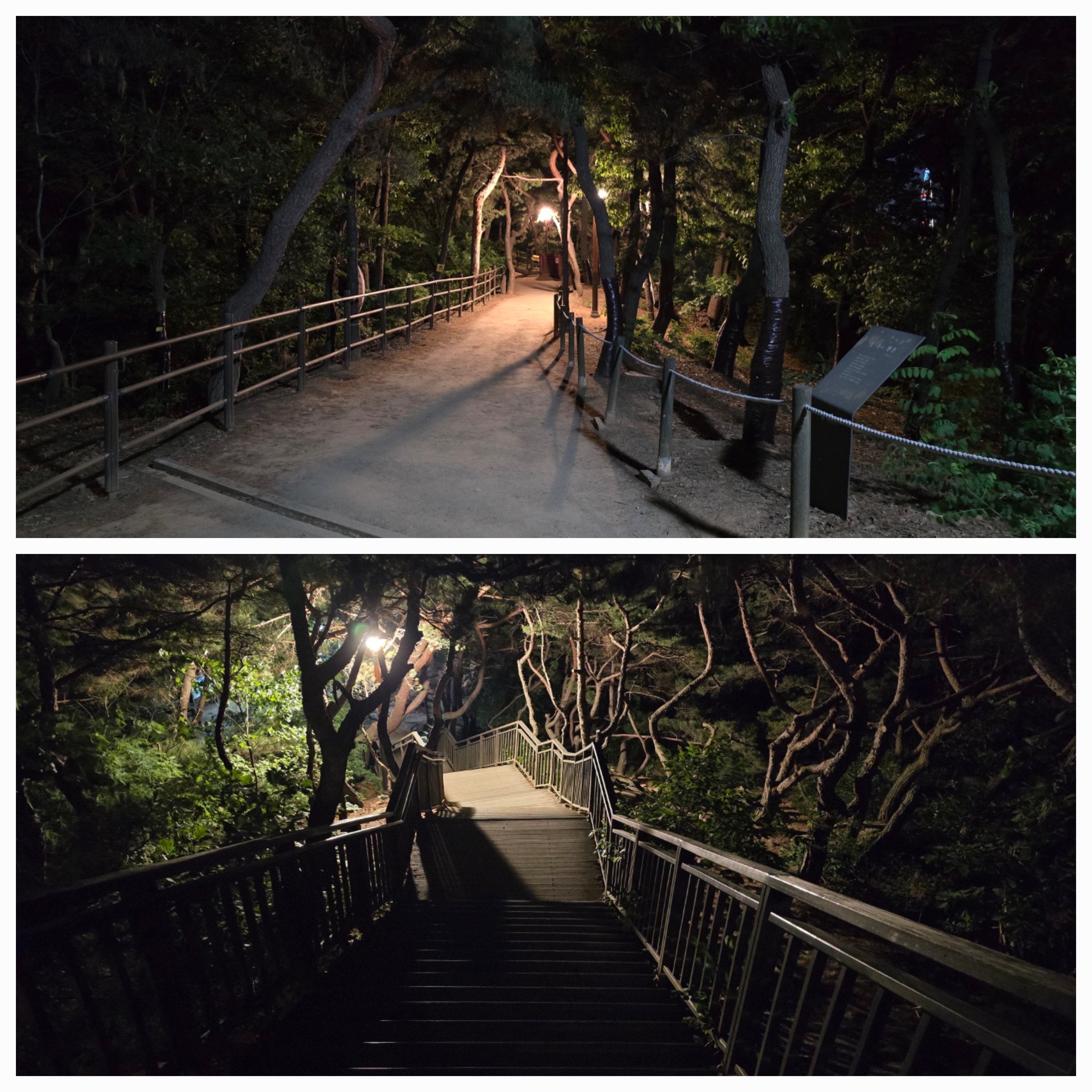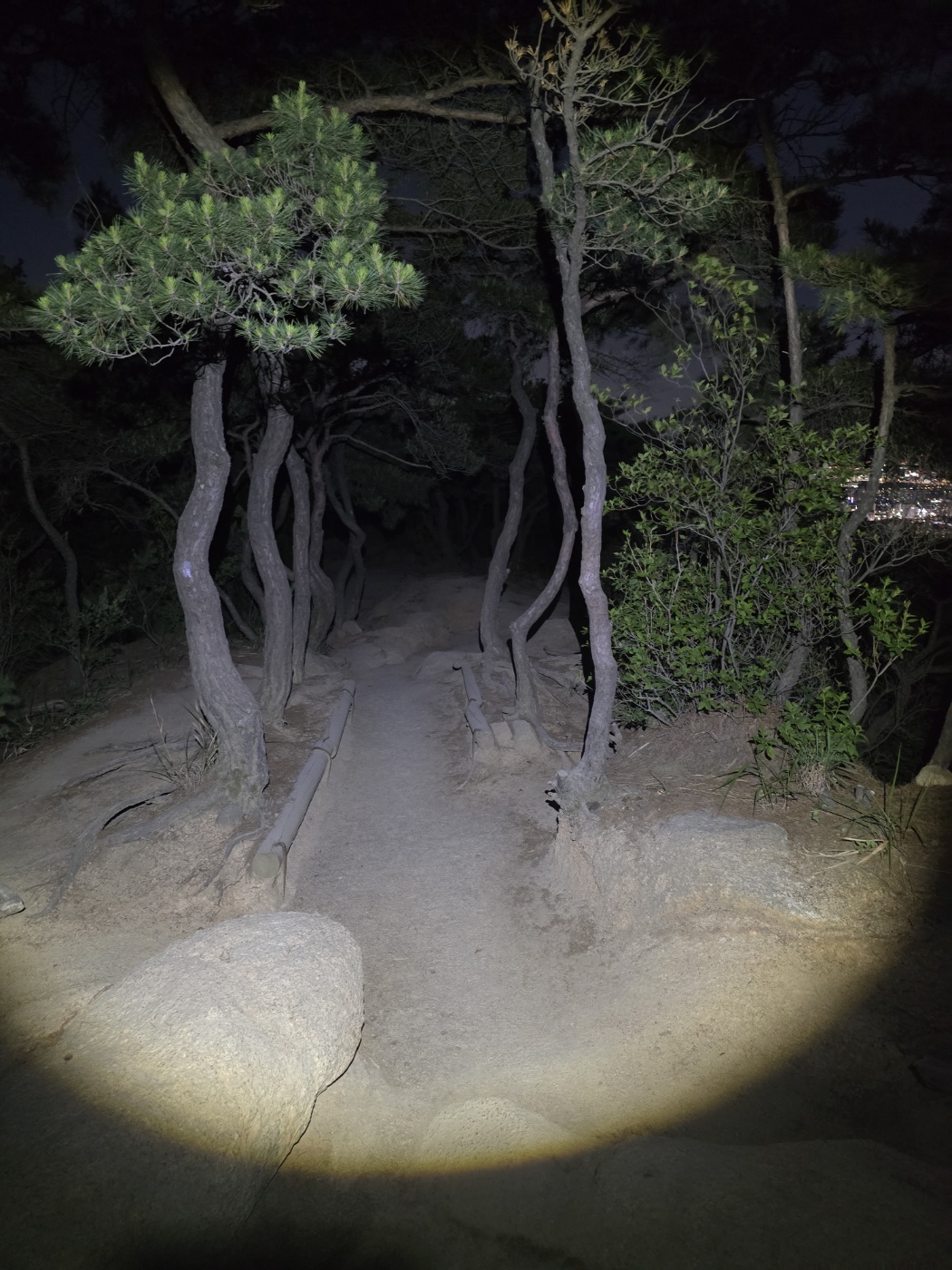 밤이 깊어져 이제 내려가보기로 한다. 내려가는 길 등산로에는 곳곳에 조명등이 있어 손전등 없이도 안전하게 내려갈 수 있었다.