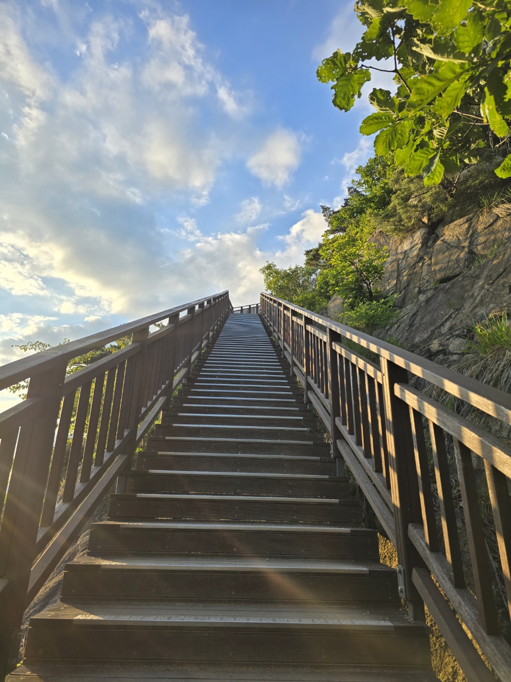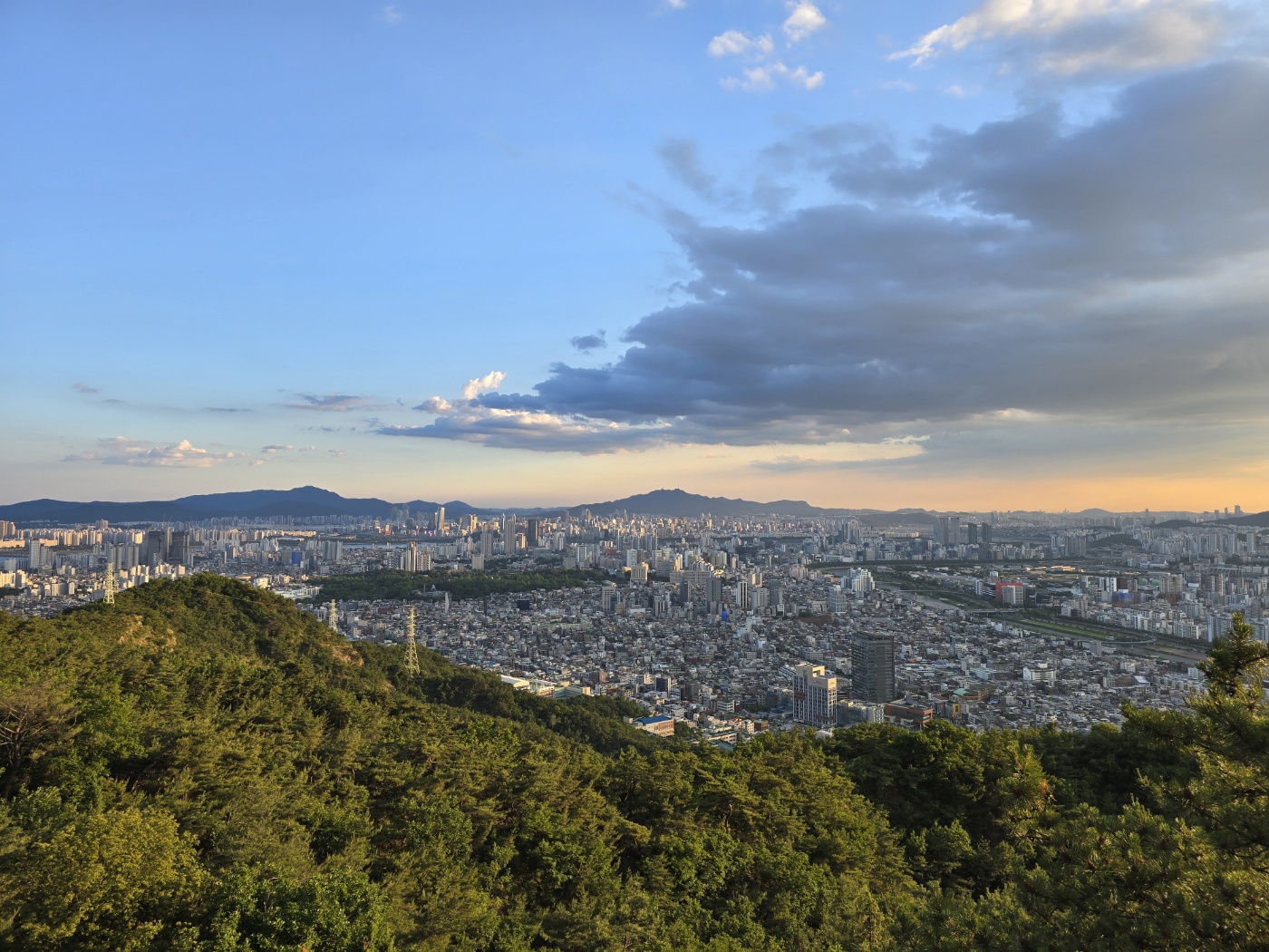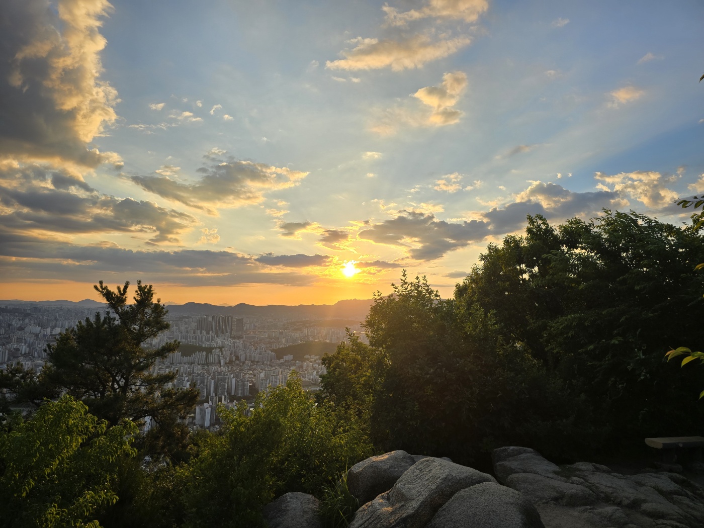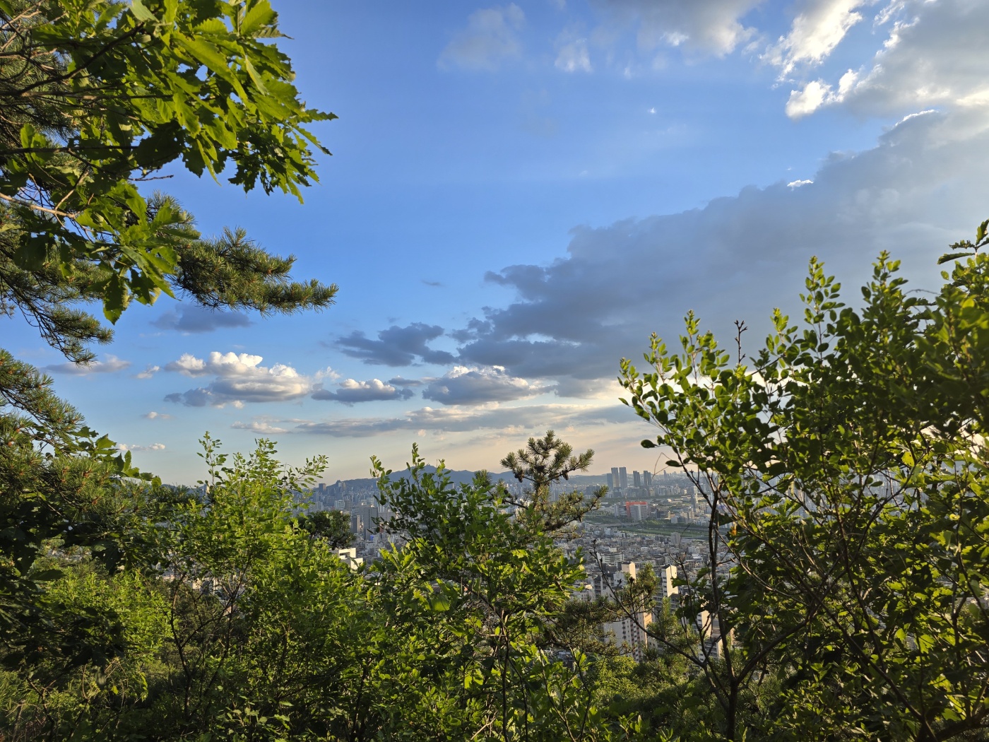계단을 올라가다 왼쪽을 보니 서울일대의 도시 전경이 한눈에 들어왔다. 바람도 불어줘서 계단을 오르면서 힘들었던 마음이 금세 사라졌다. 하늘을 보니 구름 사이로 해가 보였다. 올라온 지 얼마 지나지 않았는데도 이런 경치를 볼 수 있다니 왜 사람들이 많이 찾는 곳인지 알 것 같았다.