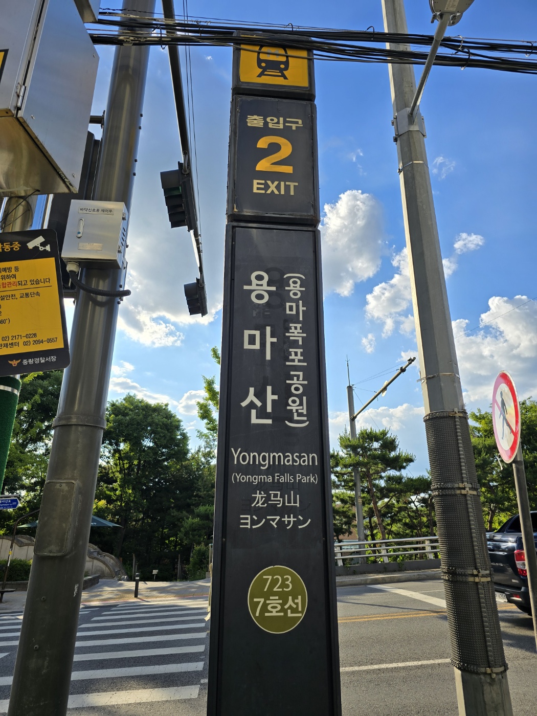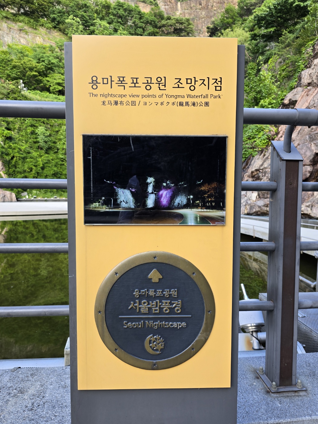 아차산으로 하산하기 전까지는 화장실이 없어 용마폭포공원 화장실을 이용해 본다. 지난번에 왔을 때도 인공폭포는 가동하지 않았었는데 오늘도 아쉽게 인공폭포는 가동하지 않고 있었다. 인공폭포 가동 안내 시간표를 보니까 금일 인공폭포 가동시간이 끝나버렸다