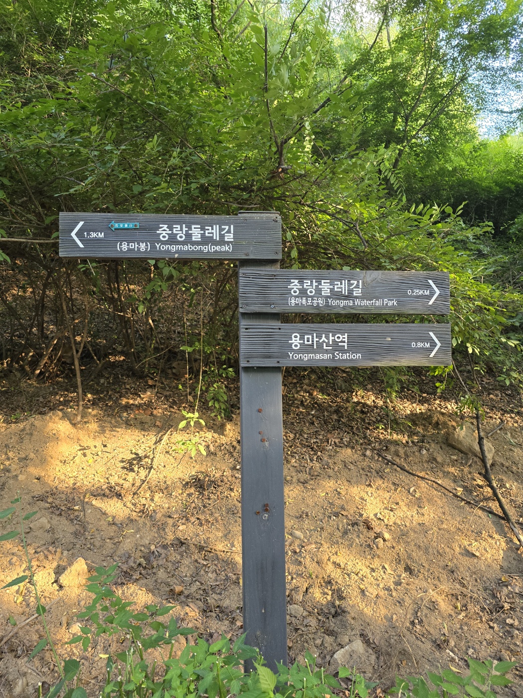 해가 지려면 아직 시간이 있었지만 천천히 용마봉 쪽으로 올라가 보기로 했다. 용마봉 가는 길이 중랑둘레길로도 이어지나 보다. 여유 있게 걸으며 파란 하늘도 올려다본다. 아스팔트 길을 지나 흙길에 접어드니 이제야 산에 온 것 같은 느낌이 든다.