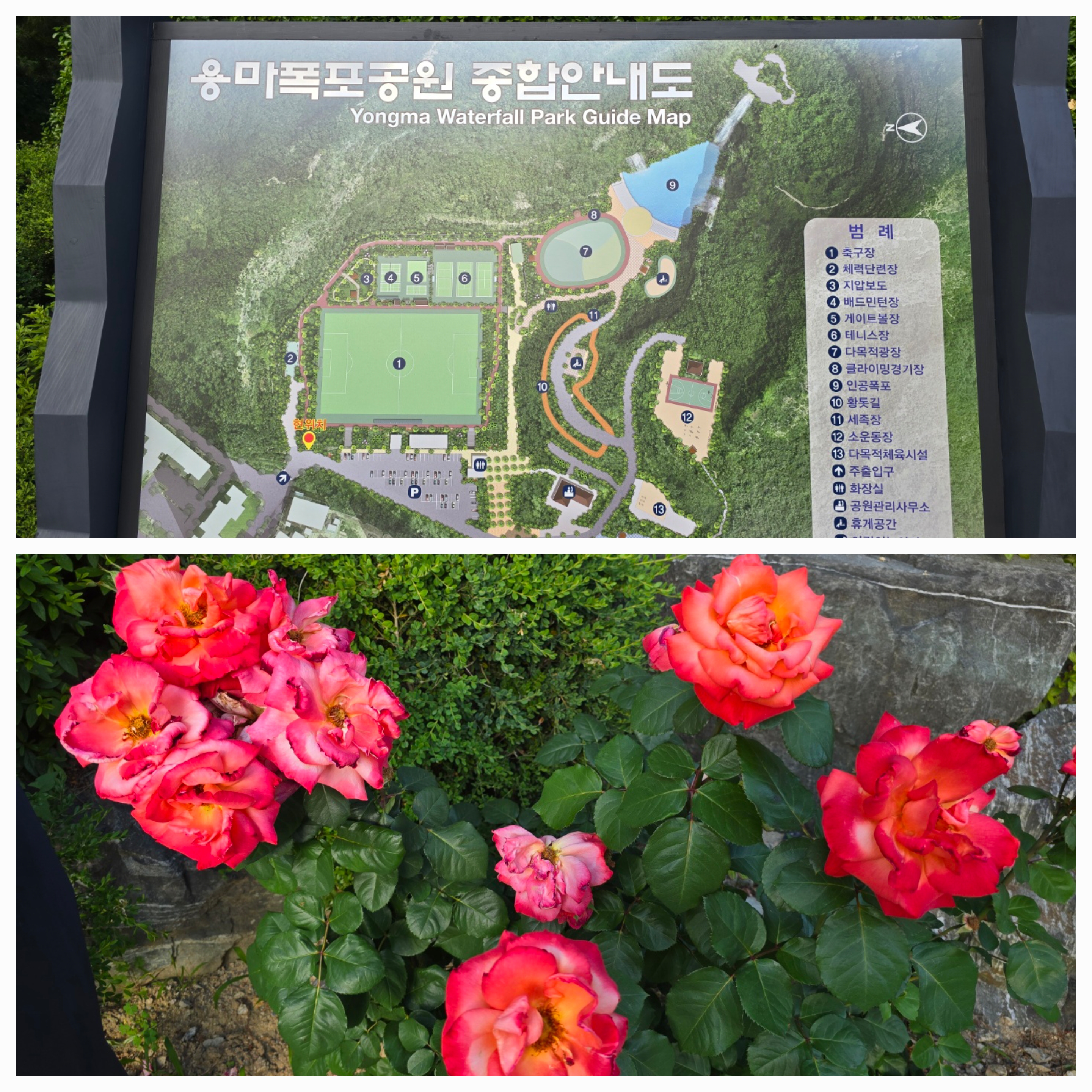 다시 찾아왔더니 익숙함에 반가운 마음이 든다. 아마도 아는 길이라 생각 드니까 그런가보다. 용마폭포공원 종합안내도 옆 만개한 월계화를 보고도 그냥 지나칠 수가 없었다. 그동안은 이름 모를 꽃이었고 보고도 못 본 것처럼 그냥 지나쳤을 것이다. 오늘은 잠시동안이라도 만개한 월계화를 바라보고 꽃의 이름도 마음안에 저장해 본다. (월계화 꽃)