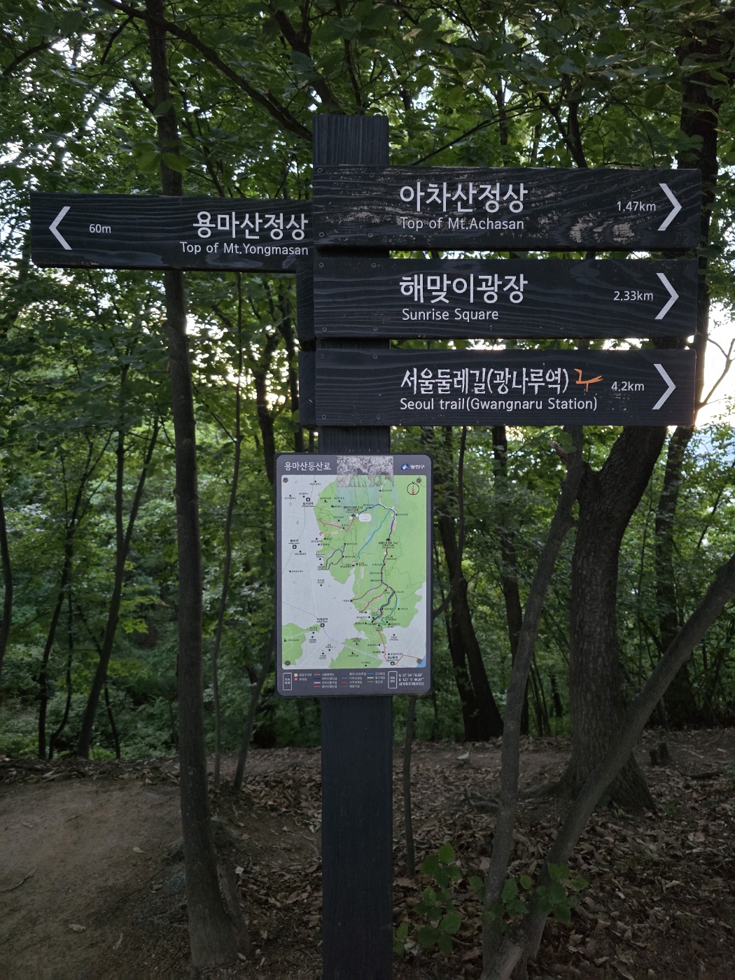 무사히 잘 내려왔다. 아차산에서 내려오는 길은 조명등이 있어서 어렵지 않게 내려올 수 있었다.